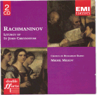 Liturgy of St. John Chrysostom Eastern Orthodox churches use a worship service called the Liturgy of St. John Chrysostom. Both Rachmaninov and Tchaikovsky, among other well known composers have put their hands to composing music for this liturgy. The form of the liturgy used among Eastern Orthodox, Catholic, Lutheran and Episcopalian churches is quite similar. The Penguin Guide to Compact Disks, gives this particular recording their rosette (highest rating), saying: "glorious ... there are moments of overwhelming simple beauty. ... it would be difficult to imagine this superbly recorded performance being bettered." For what it's worth, I agree. |