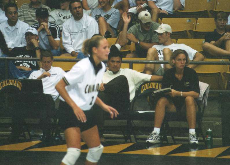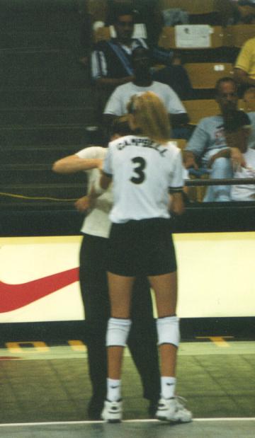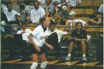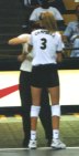 | Kelly Campbell and Sarah Lodge await the next serve. | The trainer in action. | Tegan Lynch is watched by Coach Pi'i Aiu and Assistant Coach Carrie Busteed. | Courtney Owens looks intent. |